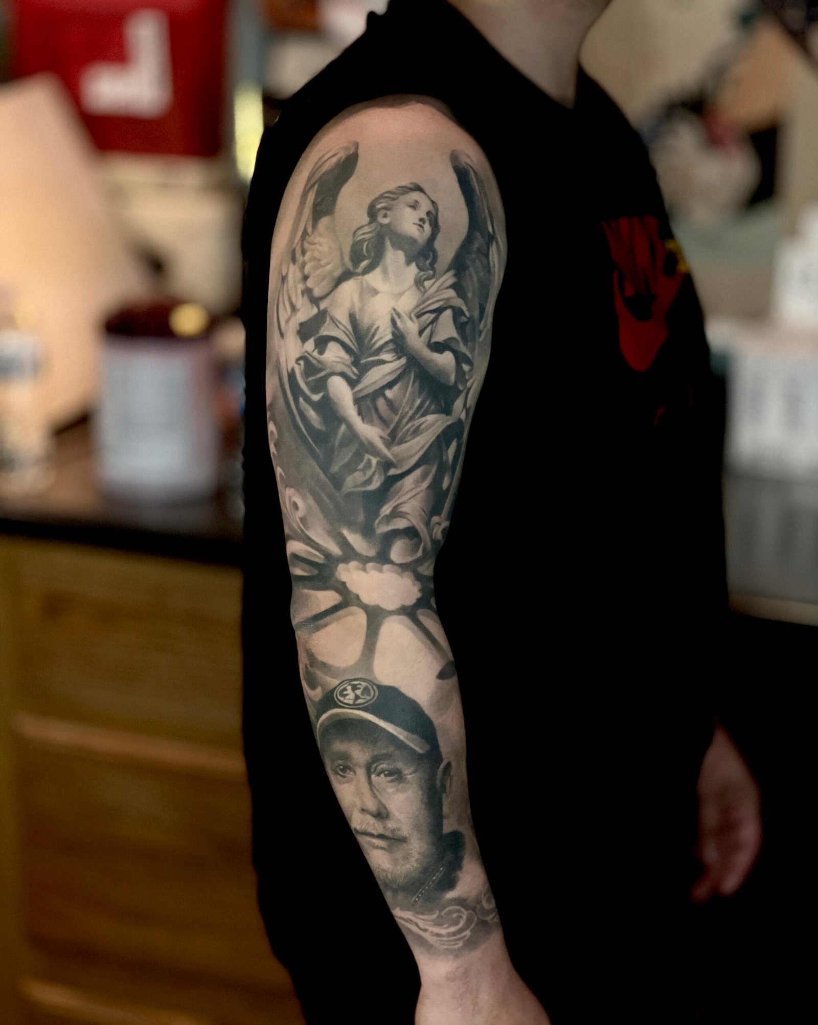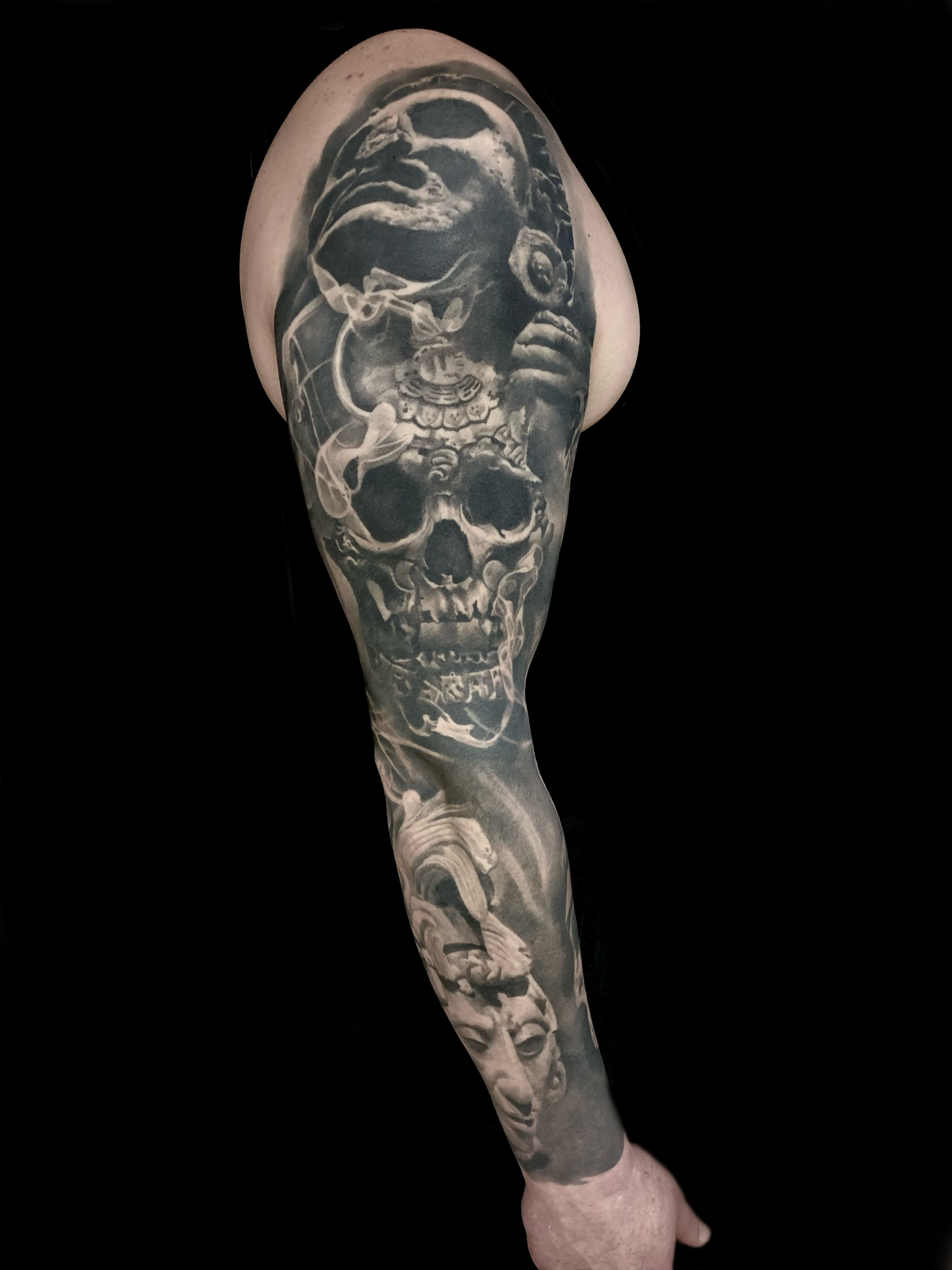 No, a full sleeve is usually not done in one session. Larger projects need to be built in stages to keep the quality high, allow the skin to recover properly, and make sure the final result feels complete.